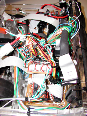 the drive motors, IR beacon (directional) detection, and tape sensors