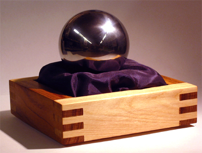 The chromed stainless steel sphere is a metaphor for a hoped life: