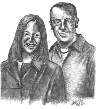 In what originally started as a pen doodle of my girlfriend and me, this work